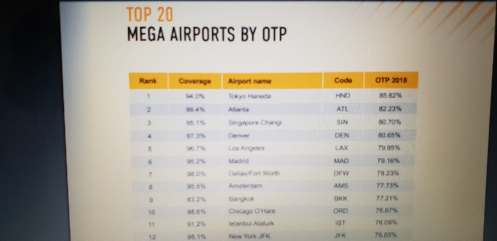 According to OAG, the most punctual mega airport in the world for flight arrivals and departures is Haneda while Changi Airport ranks third. See below.